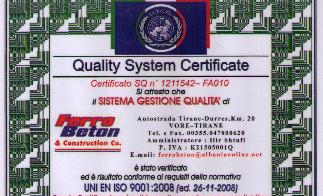 Ne daten 17/12/2010 kompania jone u certifikua me cerifiketen ISO 9001-2008 me Nr.12111542-FA010 nga Instituti Nderkombetar per Certifikimin e Cilesise Teknike